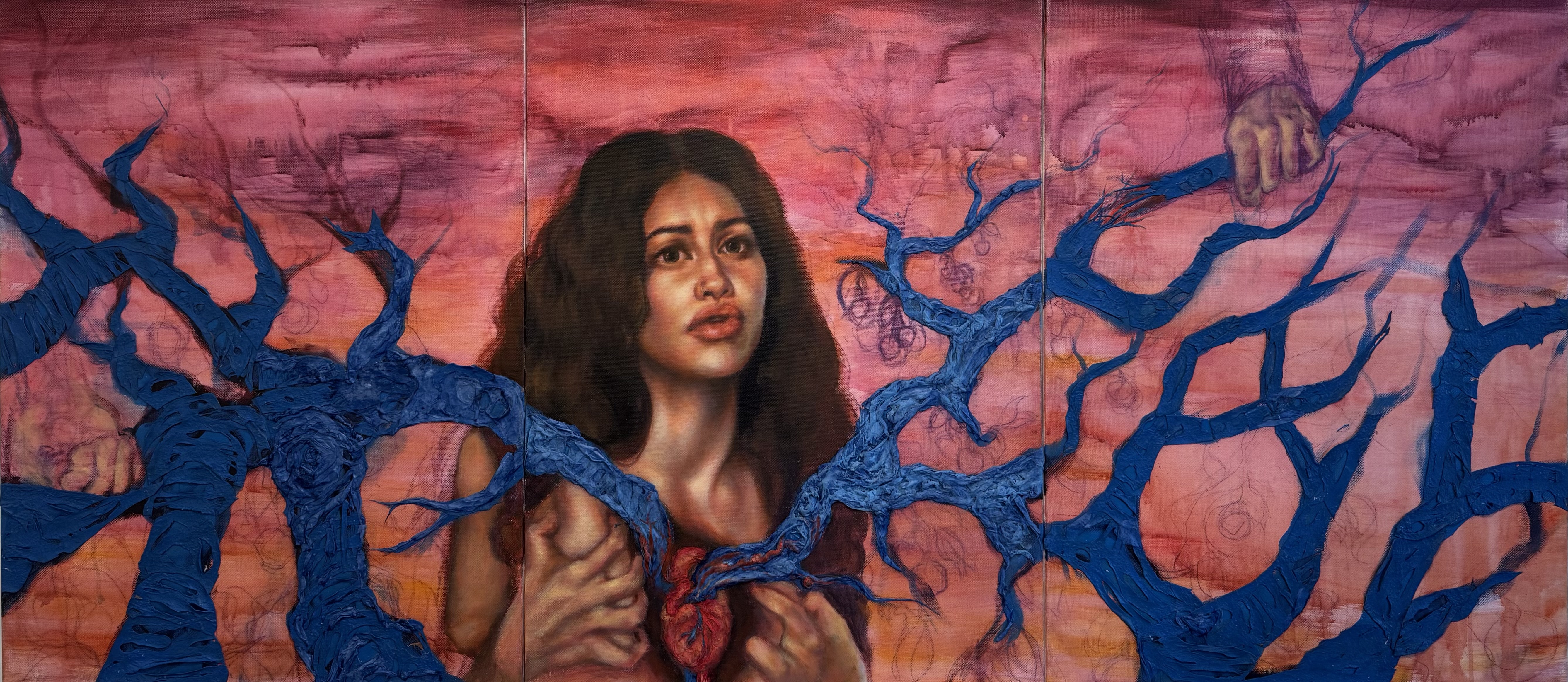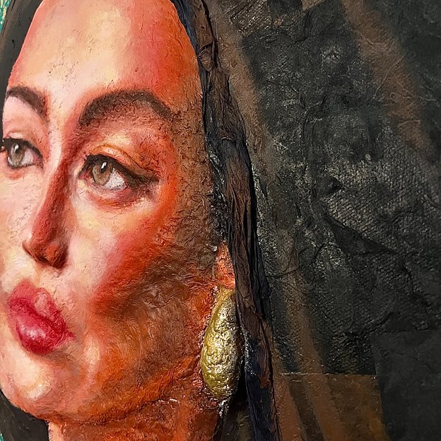 Acrylic paint, collage on canvas