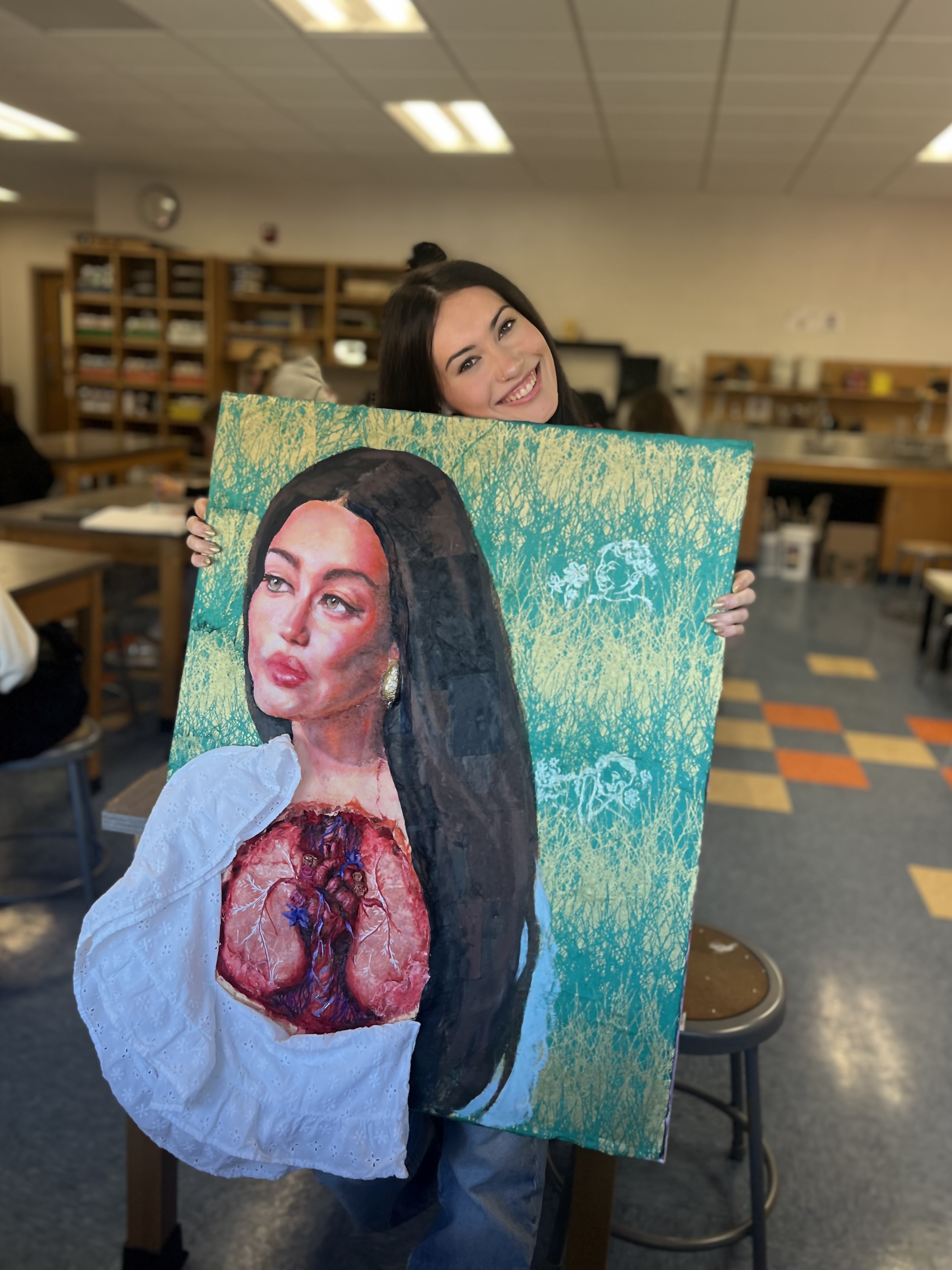 Gabriela Guizzo (b. 2008) is a student from New York. She uses a variety of mediums, including acrylic paint, colored pencil, charcoal, watercolor, collage, and papier-mâché. Her art focuses primarily on portraiture and explores themes of identity and memory.
